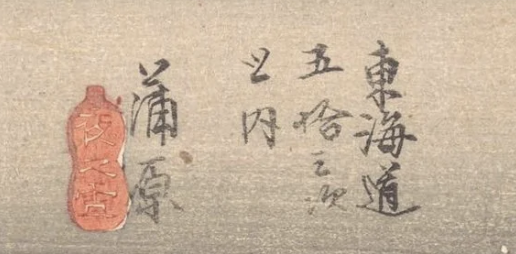 同样是在画面的下半部分,还有一系列印章可以让我们窥见浮世绘背后的制作团队和制作流程,这就是版元印和匠人印。