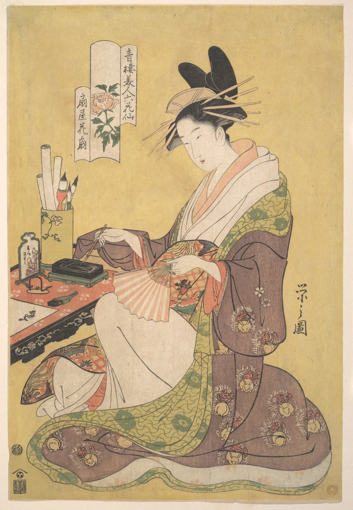 <青楼美人六花仙扇屋花扇>;鸟文斋荣之; 1794年