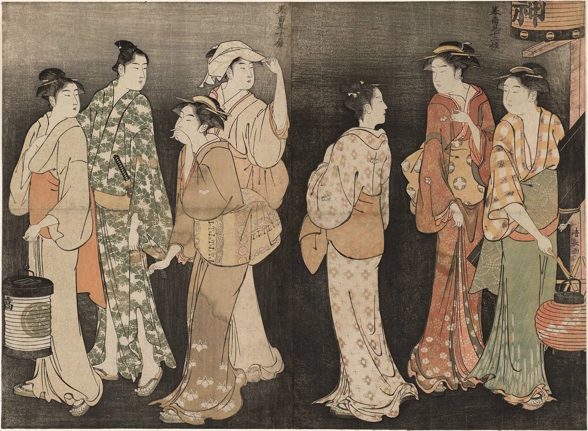 <美南见十二侯 七月 夜别>; 鸟居清长; 1784年